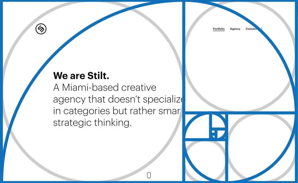 Bố cục thiết kế điều hướng mắt người xem. Đường xoắn ốc tỷ lệ vàng giúp xác định vị trí các yếu tố quan trọng (hình vuông lớn) và yếu tố phụ (hình vuông nhỏ). THE MONEST – Branding Agency cho rằng áp dụng tỷ lệ vàng giúp tiết kiệm thời gian, nhưng vẫn cần linh hoạt dựa trên mục tiêu thiết kế và trải nghiệm người dùng.
