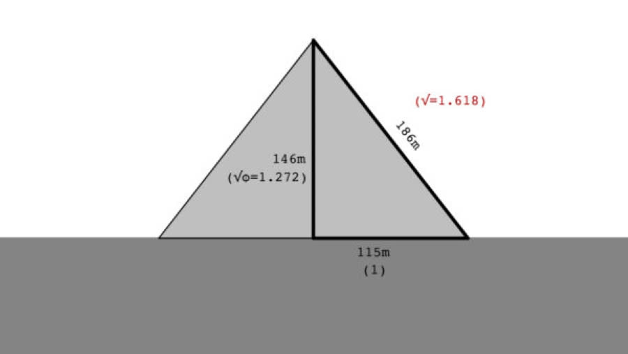 Khoảng năm 2600 TCN, người Ai Cập cổ đã áp dụng tỷ lệ vàng trong xây dựng các Kim Tự Tháp. Ví dụ, tổng diện tích 4 mặt bên chia diện tích đáy gần bằng 1,618, hay tỷ lệ cạnh huyền và cạnh đáy của mặt cắt dọc cũng xấp xỉ con số này.