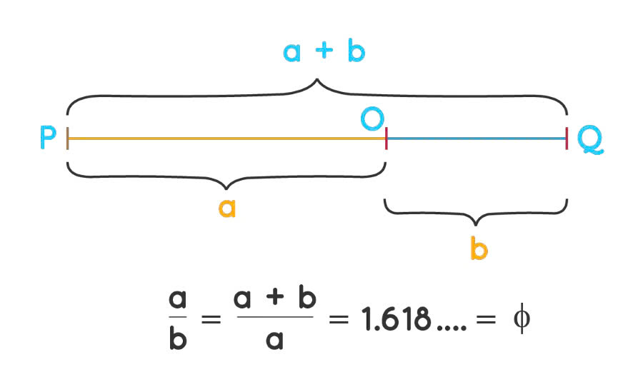Tỷ lệ vàng xuất hiện khi một đường thẳng được chia thành 02 đoạn – đoạn dài hơn (a) chia cho đoạn ngắn hơn (b) bằng tổng chiều dài hai đoạn (a+b) chia cho đoạn dài (a). Kết quả của phép tính này là số vô tỷ xấp xỉ 1,618. THE MONEST – Branding Agency hiểu rằng đây là con số kỳ diệu giúp tạo sự cân bằng và hài hòa trong thiết kế. Một cách hình dung phổ biến hơn chính là đường xoắn ốc vàng, hình thành từ các hình vuông phát triển theo dãy số Fibonacci: 0, 1, 1, 2, 3, 5, 8,… Khi sắp xếp các hình vuông theo dãy Fibonacci và vẽ vòng cung trong mỗi hình, chúng ta có đường xoắn ốc vàng.
