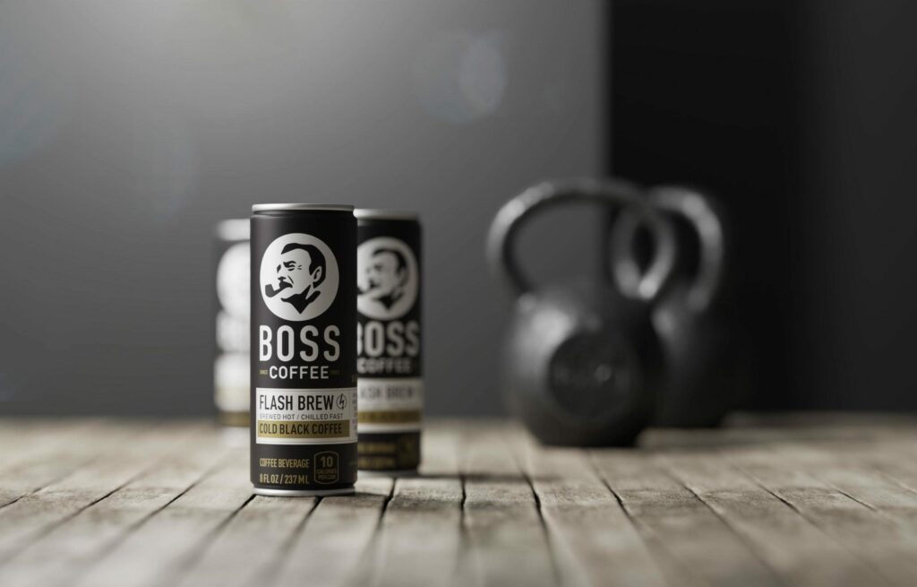 Hiệu ứng metallic trên bao bì cà phê lon cũng đang trở thành yếu tố nhận diện trong phân khúc cà phê lon cao cấp. Boss Rainbow Mountain Blend hay Starbucks Doubleshot Espresso sử dụng ánh kim để gợi sự sang trọng và công nghệ chế biến hiện đại. Những bề mặt metallic phản chiếu ánh sáng giúp lon trông “sống” hơn, tạo cảm giác chuyển động và thu hút mắt nhìn từ xa. Trong thiết kế hiện đại, ánh kim không chỉ là hiệu ứng trang trí mà là một lớp ngôn ngữ về độ cao cấp và tin cậy.